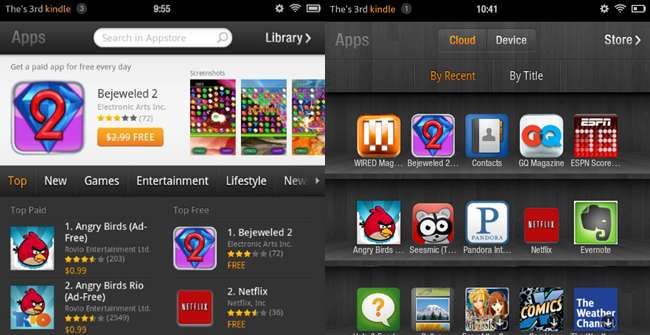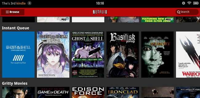 En nu, het deel waar veel mensen zich over hebben afgevraagd: de apps. Er is een zeer grote bibliotheek met applicaties die je op je Kindle kunt installeren, waaronder dingen als Netflix, Hulu, Pandora, Seesmic, Angry Birds, Evernote en nog veel meer. We hebben Netflix getest en het werkt redelijk goed, hoewel het een beetje springerig is, maar we vermoeden dat een deel daarvan op Netflix zit, aangezien hun navigatie ook vertraagd is op onze Roku-box.