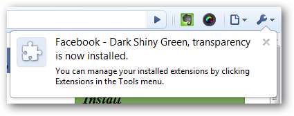 Zodra het is geïnstalleerd, ziet u een tooltip in het tandwielmenu om u te laten weten dat het gebruikersscript is geïnstalleerd.