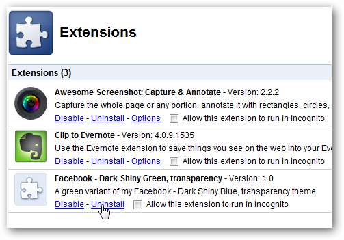 Als uw nieuwe stijlen u niet bevallen, kunt u ze gemakkelijk verwijderen in Google Chrome. Klik hiervoor op de tandwielknop linksboven en selecteer Extensies .
