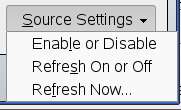 Om een van de bronnen in of uit te schakelen, klikt u op de vervolgkeuzeknop Broninstellingen en vervolgens op Inschakelen of Uitschakelen.