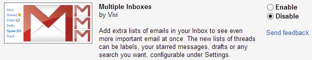 Log in op uw Gmail-account, klik op het tandwielpictogram rechtsboven op de pagina onder uw gebruikersfoto en klik op Instellingen. Ga naar het gedeelte Labs en scrol omlaag totdat u het item Meerdere inboxen vindt - of u kunt ernaar zoeken.