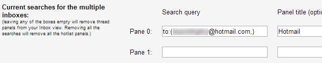 Om e-mails weer te geven die naar een bepaald e-mailadres zijn verzonden in een van de panelen, voert u de zoekopdracht ‘to: ([email protected],) in het eerste vak in en voegt u desgewenst een titel toe.