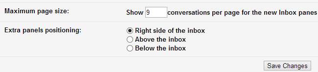 Hier kunt u ook kiezen waar de extra panelen geplaatst moeten worden. Standaard worden ze boven je inbox geplaatst, maar ze kunnen ook naar rechts of onder aan het scherm worden verplaatst.