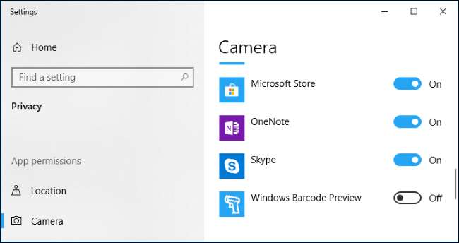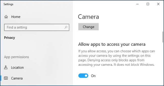 Op Windows 10 heeft de app Instellingen een paar schakelaars die uw webcam in alle toepassingen uitschakelen. Als u uw webcam hier uitschakelt, kunnen zelfs desktoptoepassingen deze niet gebruiken.