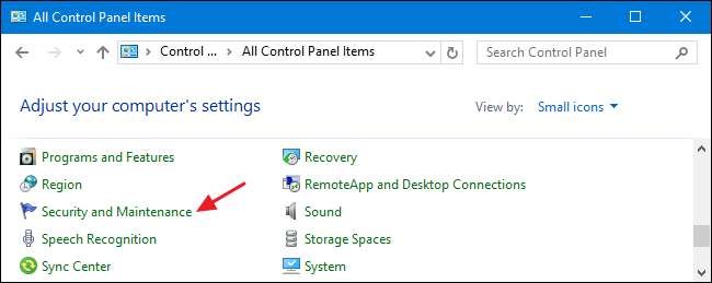 Schakel in het Configuratiescherm naar de pictogramweergave en open vervolgens de app Beveiliging en onderhoud.