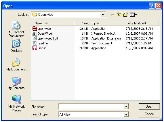 Het antwoord op onze problemen is een klein hulpprogramma genaamd OpenWide dat zich in het systeemvak bevindt en deze onhandelbare dialogen dwingt zich te gedragen.