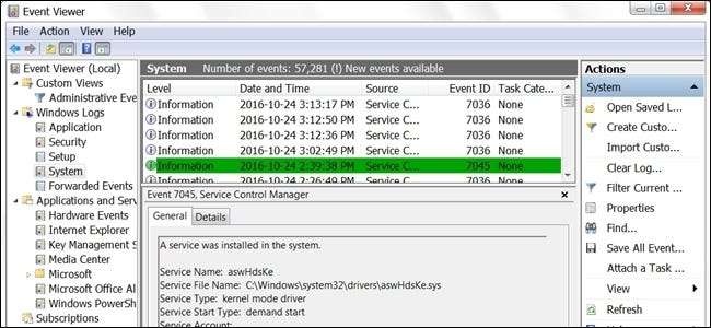 2. In het rechterdeelvenster ziet u een lijst met gebeurtenissen die zich hebben voorgedaan terwijl Windows actief was