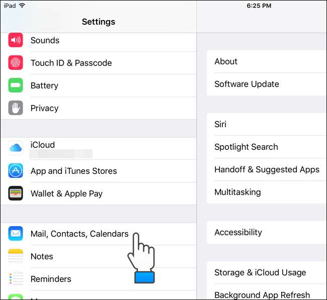 Tik aan de rechterkant van het scherm "Instellingen" op "E-mail, contacten, agenda's".