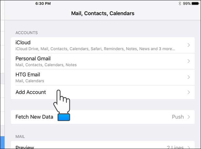 Een door uzelf gehost e-mailaccount is een account dat geen Gmail, Yahoo, Hotmail, enzovoort is. Als u een aangepaste domeinnaam heeft geregistreerd (bijvoorbeeld mijndomeinnaam.com), heeft u waarschijnlijk ten minste één e-mailadres voor uzelf ingesteld op dat domein . We laten u zien hoe u dat e-mailadres aan een iOS-apparaat toevoegt, met een iPad als voorbeeld.
