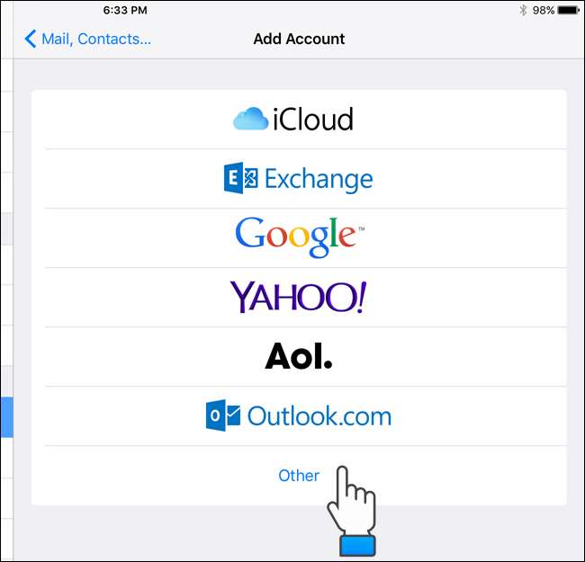 Tik in de lijst met typen e-mailaccounts die worden weergegeven op "Overige".