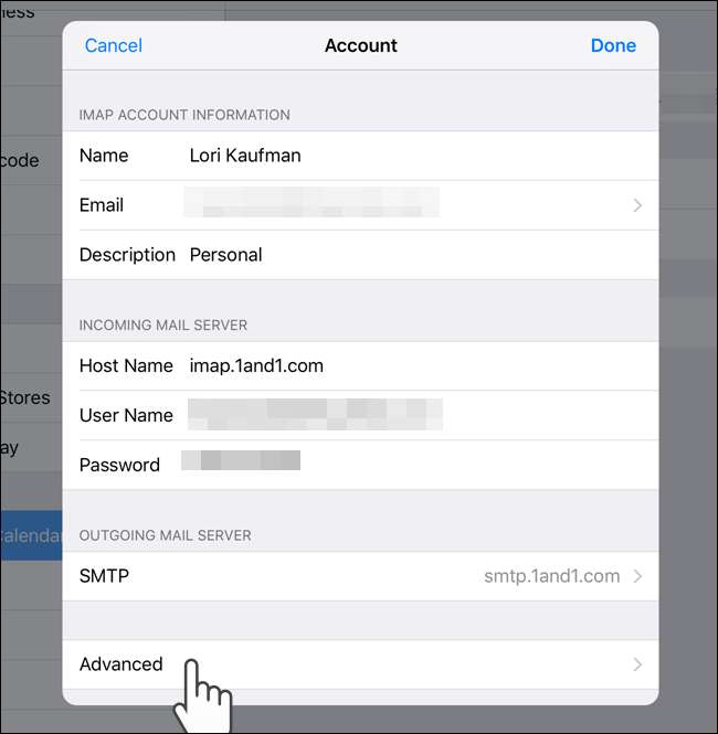 Tik onderaan het dialoogvenster "Account" op "Geavanceerd".