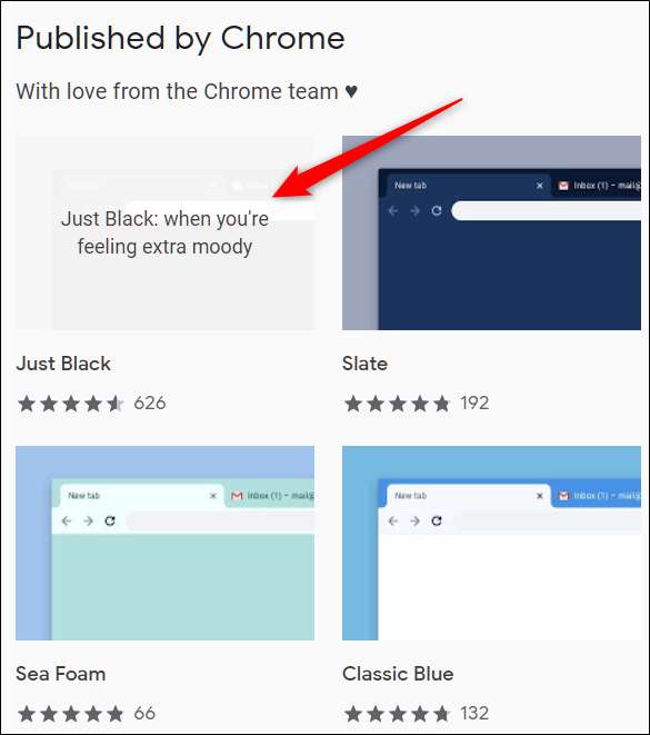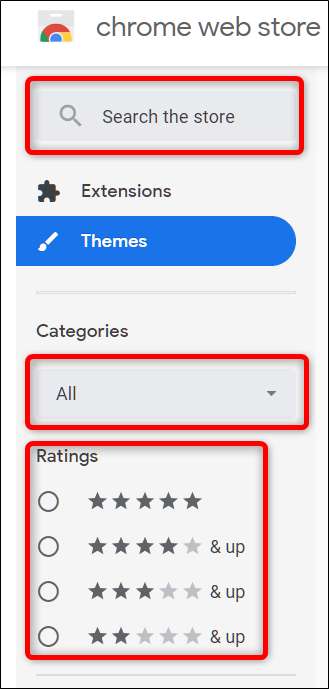 Begin met het opstarten van Chrome en ga naar het Chrome Web Store voor thema's . U kunt naar thema's bladeren met de zoekbalk, de categoriekiezer (hoewel de enige twee opties Google en artiesten zijn) of op beoordeling.