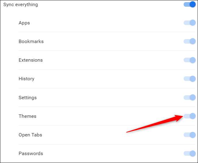 Houd er rekening mee dat wanneer u een thema aan Chrome toevoegt, het wordt gesynchroniseerd met uw Google-account (als u de synchronisatie van Chrome met uw Google-account heeft ingesteld). Als u zich dus aanmeldt bij Chrome op een ander apparaat, wordt het thema ook met dat apparaat gesynchroniseerd. U kunt dat voorkomen door naar Instellingen> Synchroniseren te gaan en daar de schakelaar "Thema's" uit te schakelen.