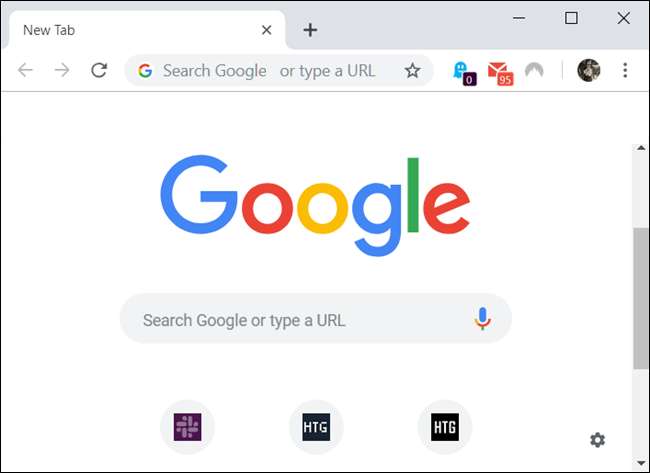 Omdat Chrome alleen het meest recente thema bijhoudt dat u heeft geïnstalleerd, hoeft u geen andere thema's te verwijderen. Zodra je op de knop klikt, gaat alles terug naar hoe het in het begin was: grijs en wit.
