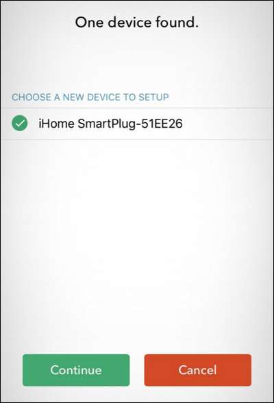 Of u zich nu aanmeldt of de stap overslaat, de applicatie zal u vragen om uw stekker opnieuw in te stellen. Grap is op hen, we zijn een stap voor! Klik op "Volgende" en negeer de prompt om het apparaat te resetten. De app begint naar apparaten te zoeken. Maakt u zich geen zorgen als het lijkt alsof het niets doet: tijdens het zoekproces is er geen indicator en het zegt dat er geen apparaten zijn gevonden, maar dan verschijnt uw apparaat plotseling. Geef het minstens 30-60 seconden.