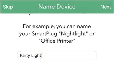 Zodra het apparaat is verbonden met uw HomeKit-systeem, wordt u gevraagd het een naam te geven. Selecteer een naam die weergeeft wat de stekker bestuurt, want deze naam is hoe Siri het apparaat identificeert. Als u bijvoorbeeld de stekker zou gebruiken om een discolamp te bedienen, zou u deze "Party Light" of "Disco Ball" willen noemen en niet "Living Room Plug".