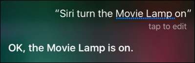 Om de stekker met je stem te bedienen, kun je Siri oproepen en een commando geven zoals 'Siri, doe de lichten aan' (als je Siri vertelde dat de stekker voor een lamp was) of 'Zet de slaapkamer aan', of door het apparaat aan te spreken op naam zoals "Siri, zet de filmlamp aan" als de stekker is aangesloten op een eye-saving bias licht achter je prachtige HDTV.