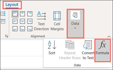 U ziet het tabblad Lay-out boven aan de bovenkant van het venster. Ga naar Lay-out en klik op "Gegevens". Selecteer in het vervolgkeuzemenu "Formule".