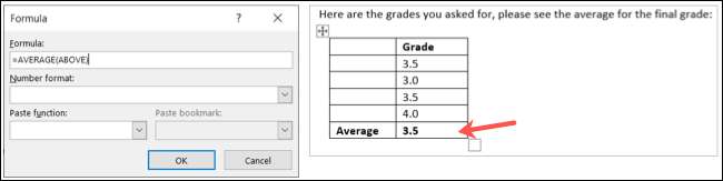 In onze e-mail sturen we onze student hun eindkwaliteitsgemiddelde. We gaan dus gemiddeld (boven) en klik op "OK." U kunt dan het uiteindelijke gemiddelde zien voor de cellen boven de formule.