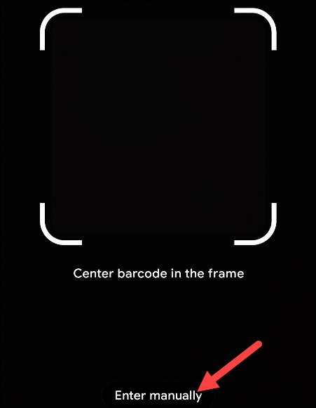 Een zoeker van de camera wordt geopend en u kunt de streepjescode van uw kaart scannen. Alternatief tikt u op "Enter handmatig".