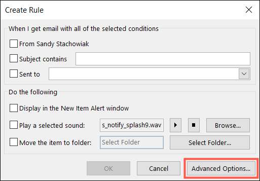 Wanneer het venster Regel Maak, klikt u op "Geavanceerde opties" om de regelwizard te openen.