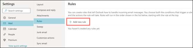 Er zijn slechts drie stappen voor het instellen van een regel in Outlook voor het web. Begin met het benoemen van uw regel.