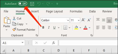 Helemaal bovenin, ziet u een optie genaamd “AutoSave.” Klik op de toggle naast AutoSave om het te veranderen naar “On”.