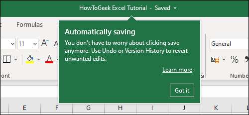 Dat is alles wat je moet doen om autosave in te schakelen. Vanaf hier op uit, zal Excel houden slaan wijzigingen die u aan deze werkmap. Je moet gewoon autosave eenmaal elke keer dat u begint te werken aan een nieuwe Excel-werkmap mogelijk te maken, en je zal niet nodig zijn om deze opnieuw op te slaan. Je moet er rekening mee dat u een internetverbinding voor autosave aan het werk juist nodig hebt en synchroniseren deze werkboeken op verschillende apparaten.
