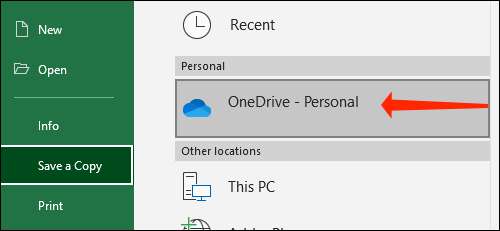 Je krijgt een pop-up venster waarin u wordt gevraagd waar u wilt uw werkmap wilt opslaan zien. Klik op “Microsoft Onedrive.”