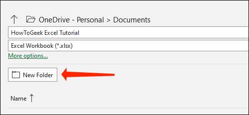 De tweede methode houdt in het klikken op de “Nieuwe map” knop en het creëren van een map in Microsoft Onedrive vanuit Microsoft Excel zelf.
