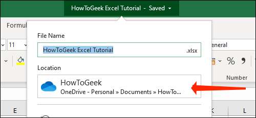 Dit zal u terug naar de Excel-werkmap te nemen. U kunt de naam van uw bestand klikt op de top om snel te controleren of deze wordt opgeslagen in de juiste map.