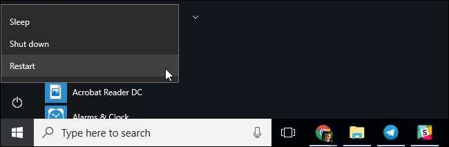 Op een pc met UEFI-firmware —Die de meeste nieuwere pc's die met Windows 8 of 10 zijn geleverd, hebben — u kunt tijdens het opstarten mogelijk geen toets indrukken om dit menu te openen. In plaats daarvan moet u eerst Windows opstarten. Houd de "Shift" -toets ingedrukt terwijl u op de optie "Opnieuw opstarten" in het menu Start of op het aanmeldscherm klikt. Windows zal opnieuw opstarten in een speciaal menu met opstartopties .