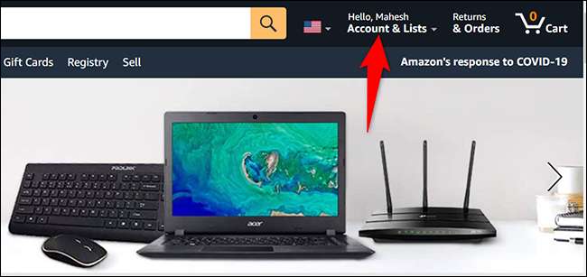 Klik in de rechterbovenhoek van de Amazon-site op de "Account & AMP; List "optie".
