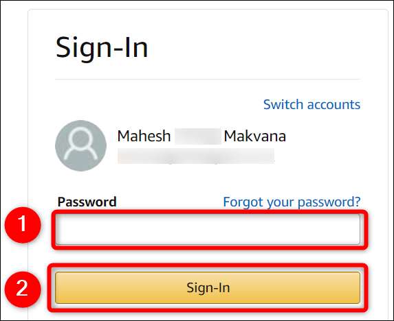 Amazon kan u vragen om uw huidige accountwachtwoord in te voeren. Klik in dit geval op het veld "Wachtwoord", typt u uw wachtwoord en klik op "Inloggen".