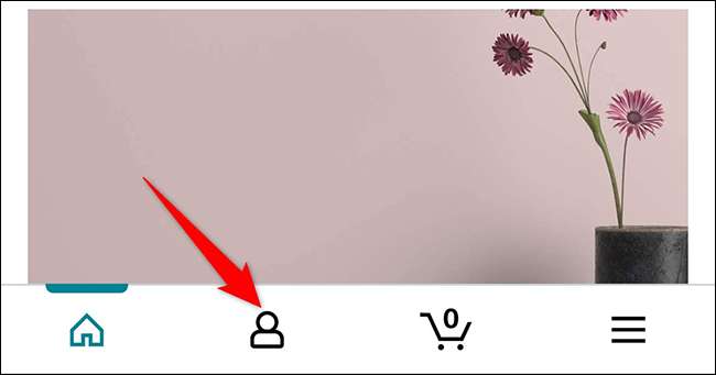Begin met het lanceren van de Amazon-app op je telefoon. Tik in de onderste balk van de app op het pictogram Gebruikersprofiel (het tweede pictogram in de rij).