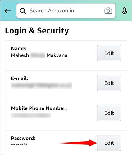 Op de "Login & AMP; Security "scherm dat, naast" Wachtwoord "opent, tik op" Bewerken "