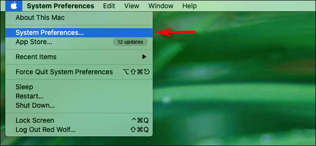 Ten eerste moeten we "Systeemvoorkeuren" bezoeken om de snelkoppeling van het aangepaste toetsenbord te maken. Klik op uw Mac op het pictogram "Apple" in de linkerbovenhoek en selecteer "Systeemvoorkeuren".