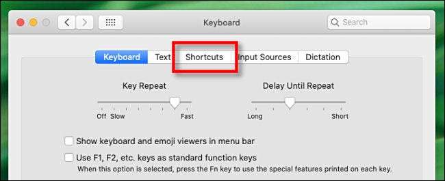 In "Systeemvoorkeuren", selecteer "toetsenbord". Klik in "Toetsenbord" -voorkeuren op het tabblad "Snelkoppelingen".