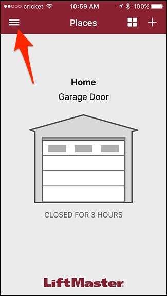 Open om te beginnen de MyQ-app op je telefoon en tik op de menuknop in de linkerbovenhoek van het scherm.