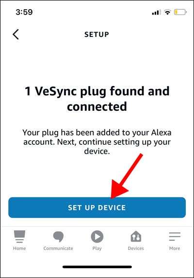 Keer terug naar de Alexa-app. Alexa moet automatisch uw plug vinden en u vragen om het in te stellen in de Alexa-app. Als Alexa uw stekker niet automatisch heeft gevonden, ga dan naar de Paar door de Skill Store sectie hieronder.