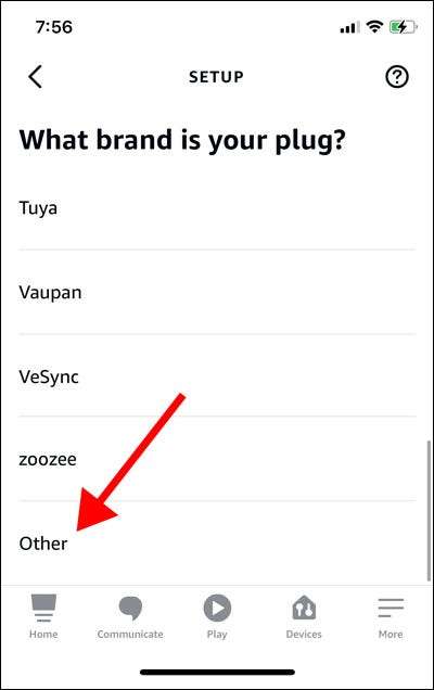 Als de merknaam van uw Smart Plug niet in de Alexa-app is vermeld, scrolt u naar de onderkant en tikt u op "Anders".