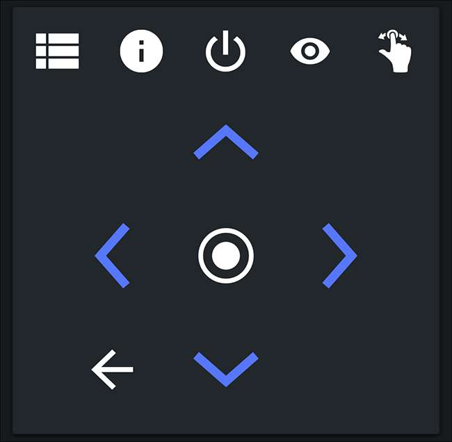 Met de pijlen en de middelste knop kun je door menu's bladeren: druk erop en het is alsof je op de pijltjestoetsen en de Enter-toets op je toetsenbord drukt. Het is even wennen, vooral als je gewend bent aan een fysieke afstandsbediening, maar grotendeels hetzelfde werkt.