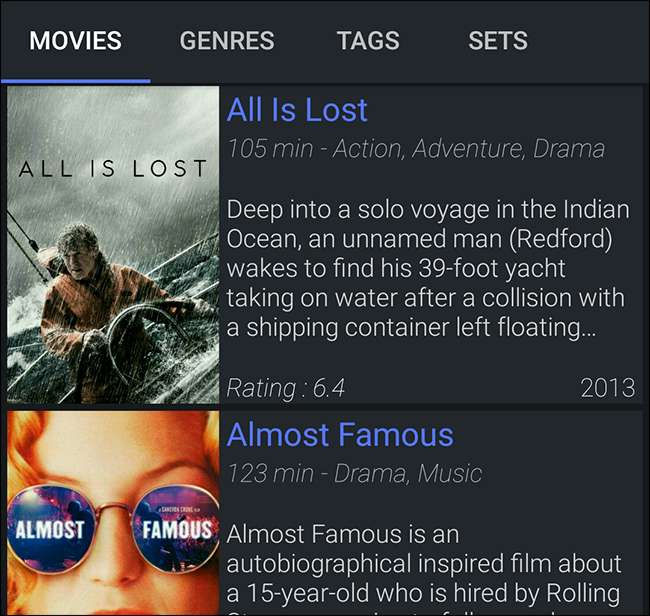 Je ziet posters, samenvattingen van de plot en meer. Het is een geweldige manier om uw persoonlijke videocollectie overal in huis te verkennen, of terwijl er iets wordt afgespeeld. U kunt op alles tikken om het afspelen te starten.
