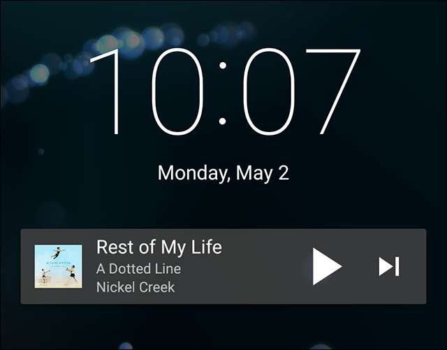 Wat echt cool is aan de melding, is dat deze wordt weergegeven op je vergrendelingsscherm. Dit betekent dat u uw muziek kunt pauzeren wanneer u het huis verlaat, of snel naar het volgende nummer kunt gaan tijdens uw training, zonder zelfs uw telefoon te ontgrendelen.