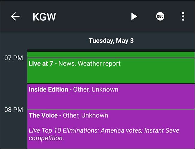 Je kunt kijken wat er nu aan de hand is, of het schema van een specifiek kanaal bekijken. Helaas kun je vanaf hier geen opnames plannen, maar het is een geweldige manier om te zien wat er aan de hand is zonder te onderbreken wat er momenteel op je tv gebeurt.