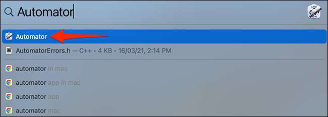 Open eerst automator op uw Mac. Doe dit door op de opdracht + spatiebalk te drukken, "Automator" in Spotlight-zoekopdracht typen en selecteren in de zoekresultaten.