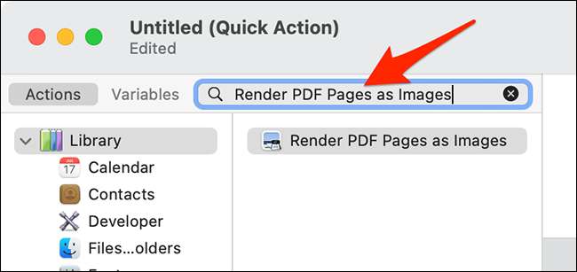 Klik in de linkerbovenhoek van Automator op "Acties". Klik vervolgens op het veld Tekst naast "Variabelen" en typ "PDF-pagina's weer als afbeeldingen."