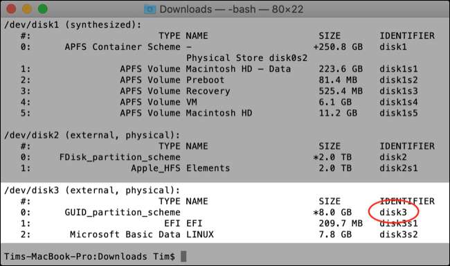 Met uw IMG-bestand klaar om te gaan, is het tijd om naar USB te schrijven. Ga terug naar terminal en typ het volgende om een lijst met schijven te krijgen:
