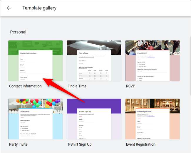 Zodra het venster is geopend, kiest u de sjabloon 'Contactgegevens'.