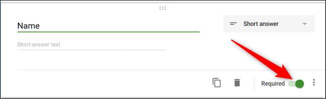 Standaard zijn naam, e-mailadres en adres vereist om het formulier in te dienen. Om in of uit te schakelen of een sectie verplicht is of niet, klikt u op het gewenste veld en schakelt u vervolgens de schakelaar "Vereist" in of uit.